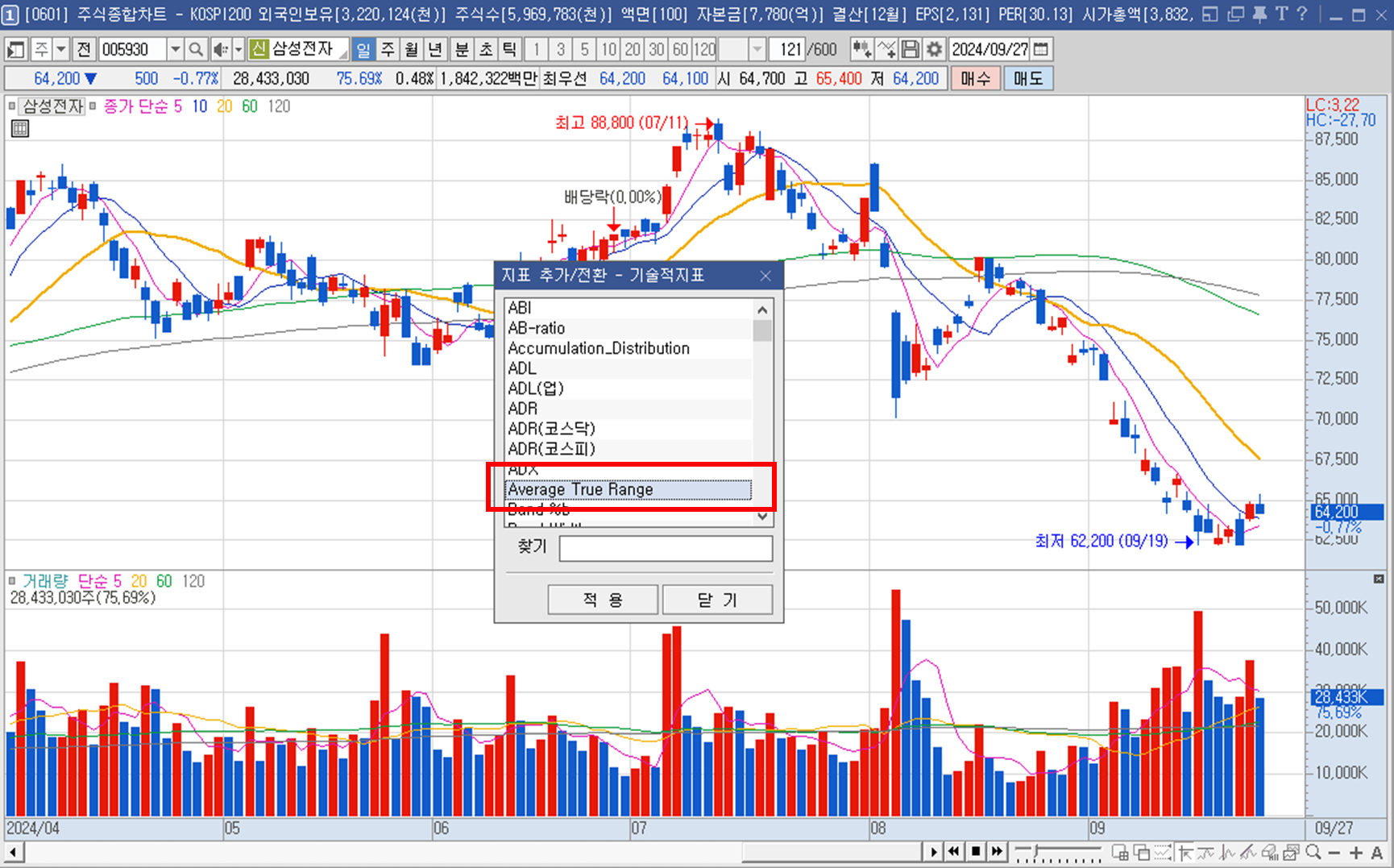 키움 HTS에 ATR 추가하기